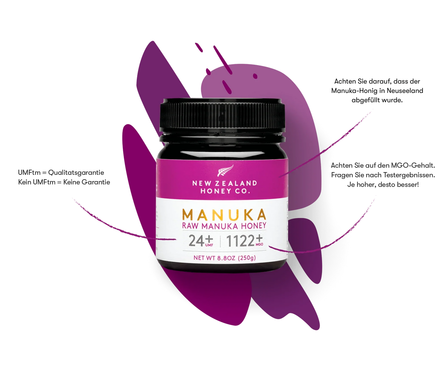 Der gesamte Manuka-Honig von New Zealand Honey Co. wird unabhängig getestet und von der UMFHA zertifiziert, um die auf dem Etikett angezeigte UMF™ Bewertung zu garantieren.